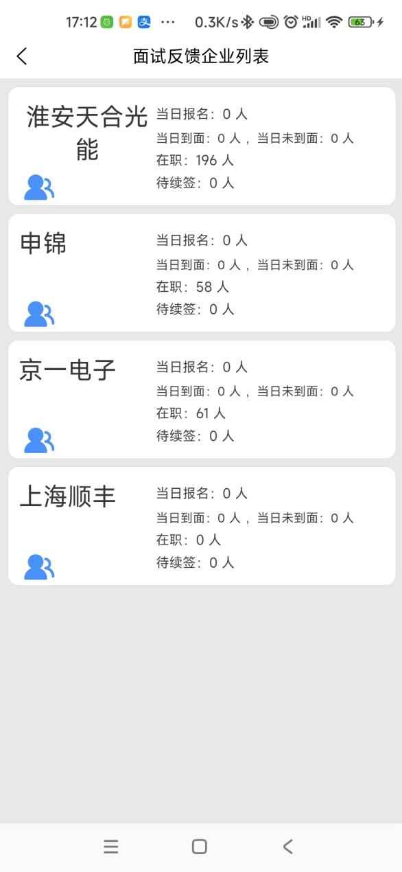面试反馈,使用路径在工作台-企业管理-面试反馈,这个功能是管理功能中使用频率最高的功能,所有报名用户的面试结果、入离职反馈,都在这里操作。每个企业的管理员可以操作自己负责企业的员工。