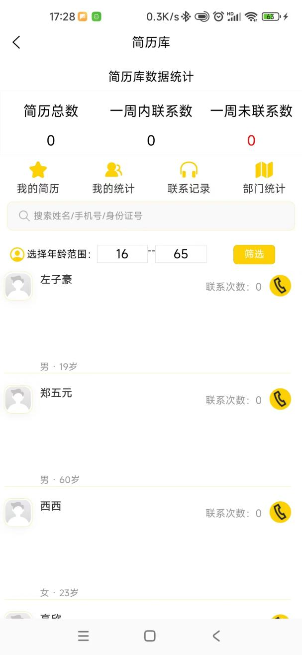 简历库,使用路径工作台-企业管理-简历库,简历库包含所有报名过的用户信息,方便管理者筛选,沟通。每个管理员可查看自己锁定联系的简历,超过时间未联系的人员将回到简历库总表中。