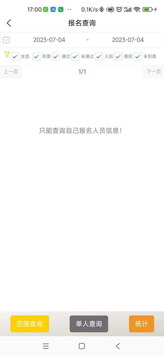 主界面-我的,属于个人中心,用户可在此更改个人资料。属于普通用户的一般操作入口也集中在这里,比如在线报名、报名查询、工资明细、微信发薪、考勤打卡等。